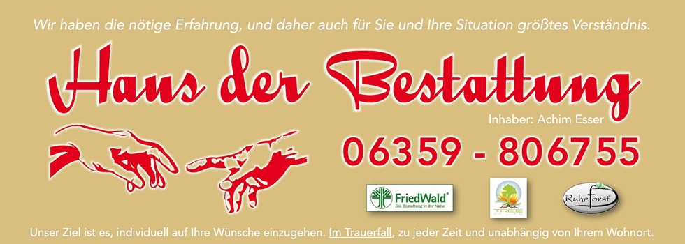 Als Alternative zu herkömmlichen Bestattungsarten geht der RuheForst® Pfälzerwald neue Wege: Die Möglichkeit, in der natürlichen Umgebung des Waldes beigesetzt zu werden, ist für viele Menschen eine würdevolle Form des Abschieds. Ruhe, Harmonie und ständiger Wandel der Natur spenden Trost für Angehörige und Freunde. Interessenten können sich zu Lebzeiten informieren und beraten lassen, sich mit dem Ort vertraut machen, sich eine letzte Ruhestätte in naturnahen Waldbeständen aussuchen.